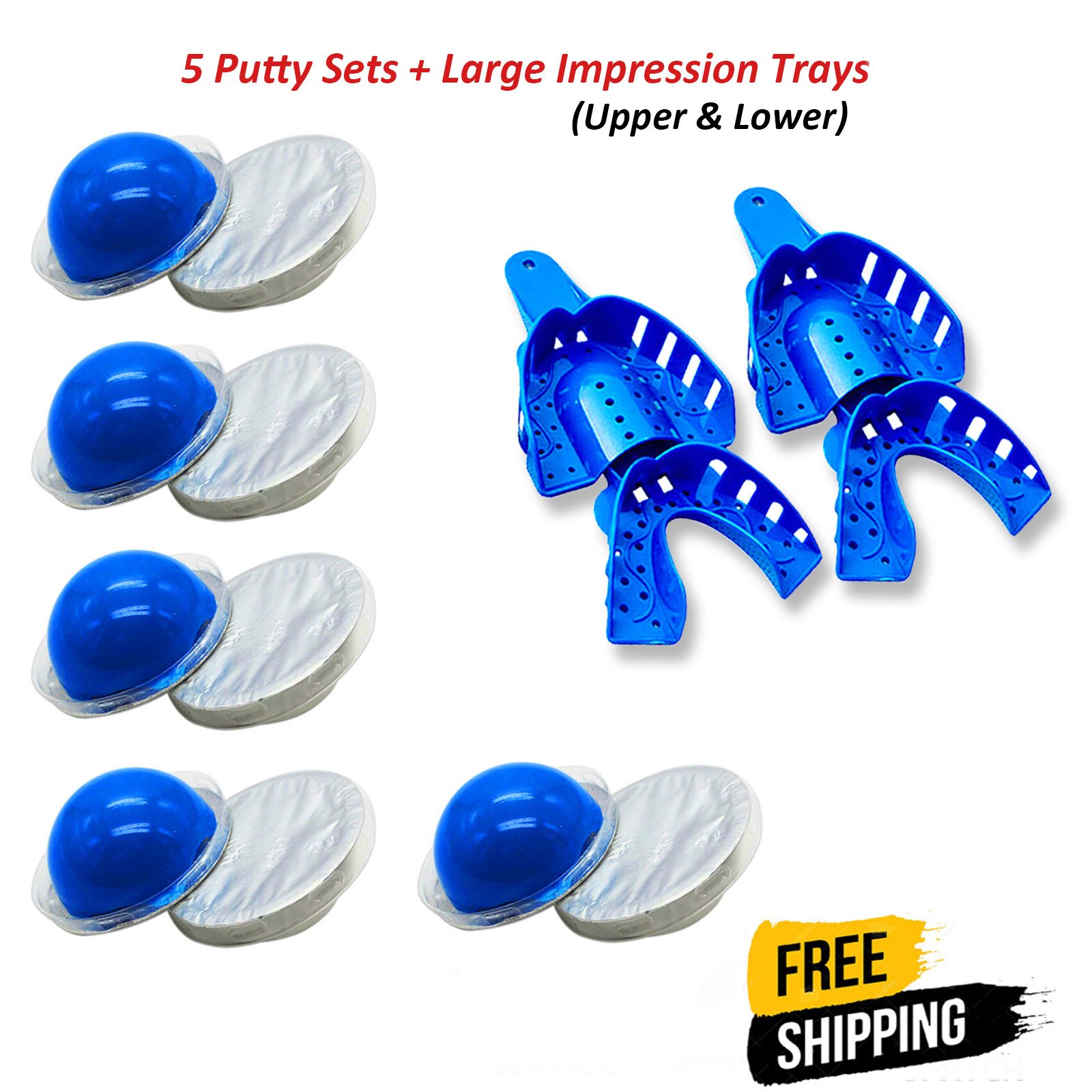 Dental Impression Kit Tooth Retainer 5 Putty Set + Upper & Lower Trays Dentistry Care Tool